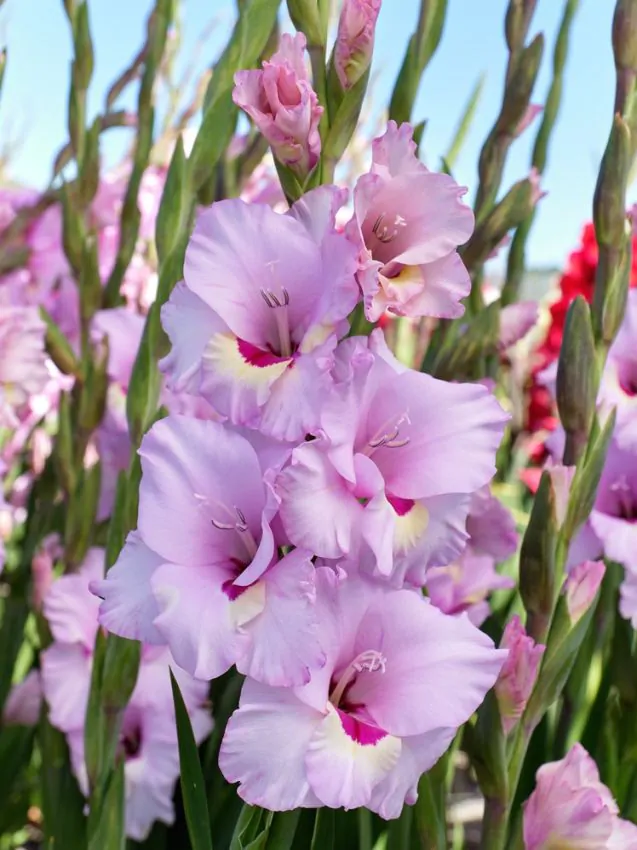 Armsad pehmed roosad õied lilla ja kreemika kollase mustriga. Suureõielised gladioolid on tõelised näituselilled.