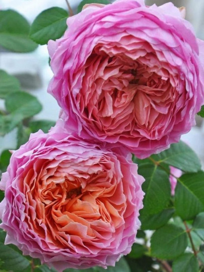 - Suured, 10–12 cm läbimõõduga • Värvus: külm lillakasroosa väljast, soe vasekarva südamik • Rosetikujuline vorm, õitseb kogu suve